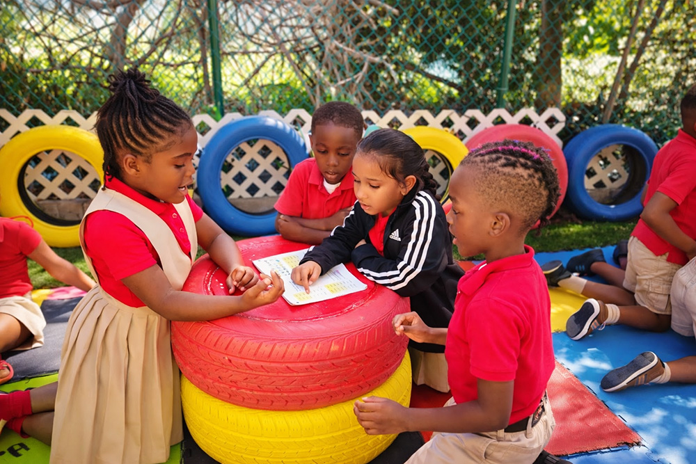 Our campus is bordered by lush tropical hedges and trees, creating a unique island themed  learning environment that connects children with nature.